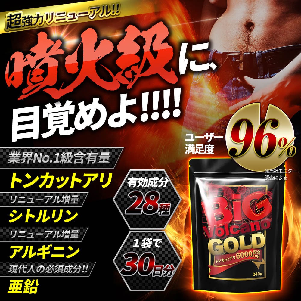 【インストラクター推奨】 トンカットアリ6000mg配合 ビッグボルケーノGOLD シトルリン アルギニン 亜鉛 自信増大 サプリ 持続 活力 妊活サプリ クラチャイダム マカ 高麗人参 男性用サプリメント 厳選28成分配合 240粒 日本製